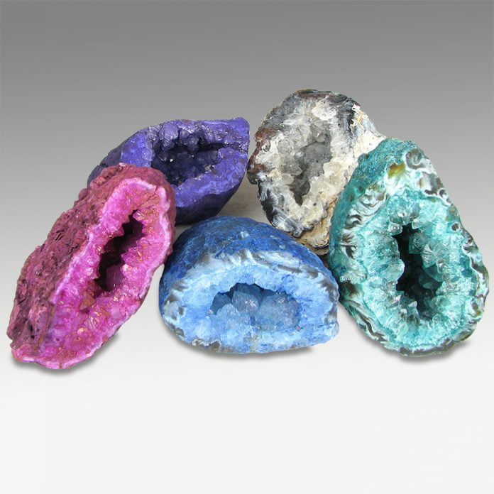 PEOPLE are crazy for geodes right now. A geode may look like a plain, ugly rock from the outside, but when it is broken open, it is filled with beautiful crystals. People use the crystals for decoration and jewellery. But where do they come from? Geodes are born when a cavity develops in a rock. These holes are often formed by lava cooling around a gas bubble. When the gas escapes, it leaves a pocket of space in the volcanic rock shell. Then mineral-rich water seeps through tiny pores in the shells. The water evaporates, leaving the minerals behind. Over thousands of years beautiful crystals are form. They are