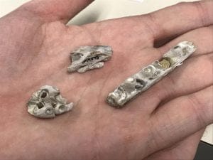 The fragments found include a partial snout with teeth and tooth bases, partial braincase, and a section of upper jaw with tooth bases. From this, they can estimate the entire baby skull to have been around 30cm (1ft) in total.