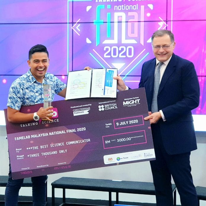 This year’s competition in Malaysia attracted 53 applicants, with a total of 12 finalists selected from the Regional Heats held in January and February 2020. The finalists were equipped with science communication skills through a two-day masterclass organised by the British Council, delivered by Quentin Cooper who is one of the most familiar and popular UK voices of science and technology. He is a hugely experienced moderator, interviewer, trainer, lecturer and the host for FameLab International.