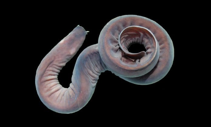 THE HAGFISH is an ancient fish which had existed since 300 million years ago. It is also known as slime eels. This fish can grow to a length of 5,600 feet and tend to stay near the shallow seafloor where it hides when in danger.